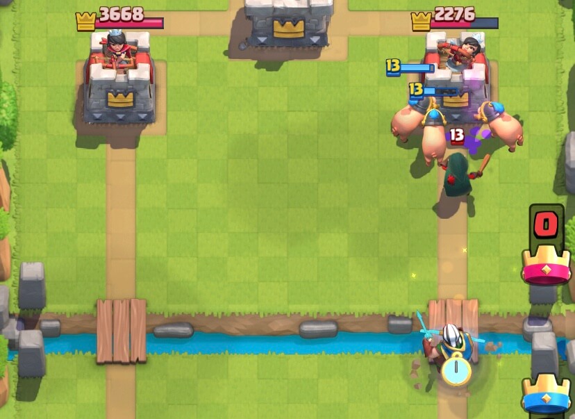 既に述べたように、ロイヤルホグには範囲攻撃ユニットを出す必要があります。その範囲攻撃ユニットに刺さるのがミニペッカです。