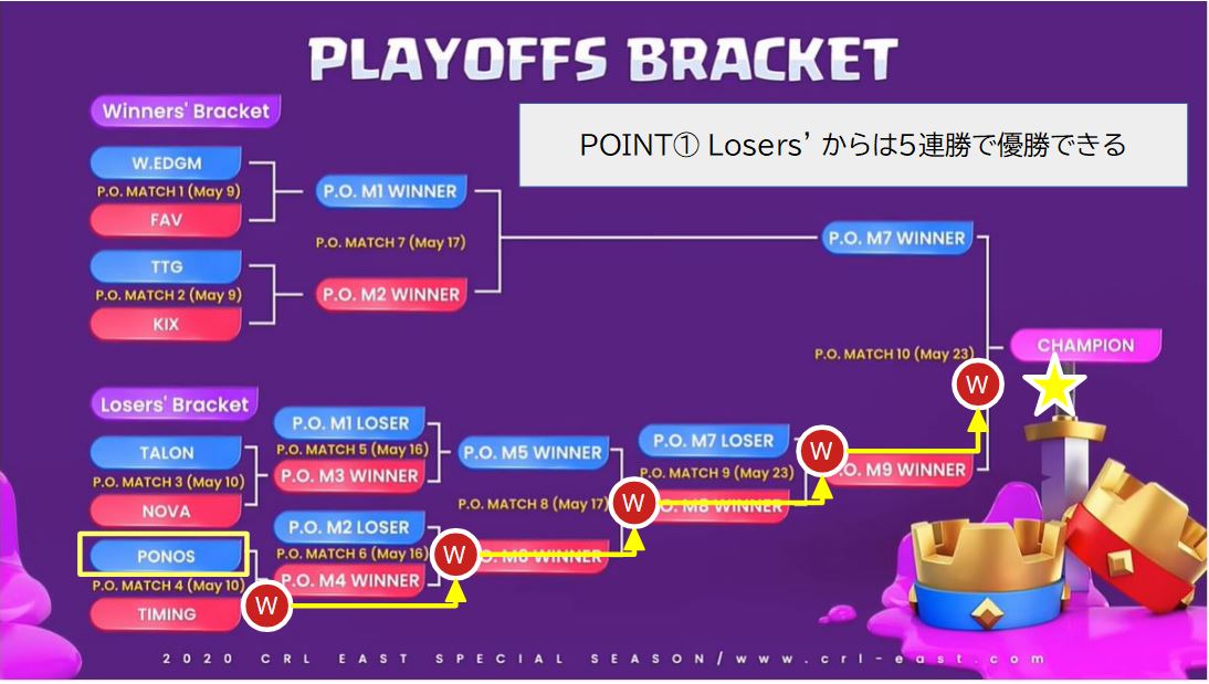 Losers’ブラケットから優勝する可能性はゼロではありませんが、その道は過酷の一言です。