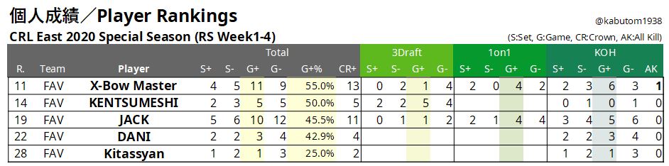 日本のFAVは、4勝3敗でレギュラーシーズン4位でした。意外なことに2-0勝利がなかった唯一のチームです。