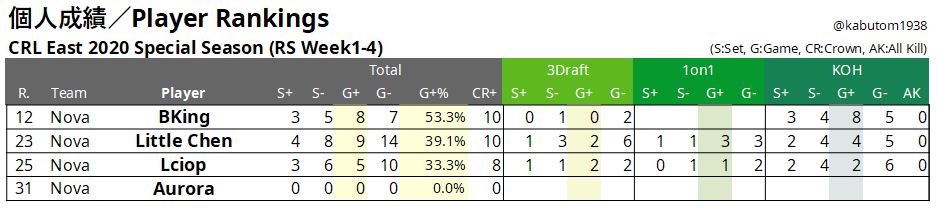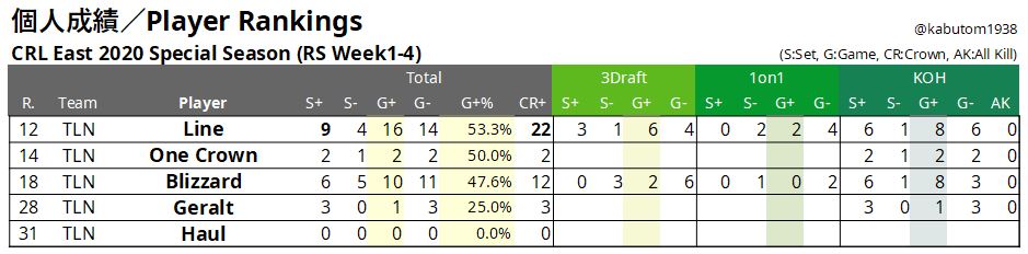 ただ、プレイオフを勝ち進ためには、もう1枚カードが足りません。昨冬の「CRL世界一決定戦」経験者Nuomici選手の復活が待たれます。