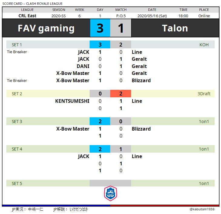 Match 1はFAV gamingの勝利となりました🔥#CRLEast #クラロワ pic.twitter.com/wjcAsBYMMW