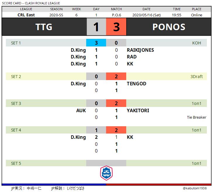 Set1をD.King選手(TTG)がいきなり3タテする逆風の出だしとなりましたが、ここからがPONOSの真骨頂。