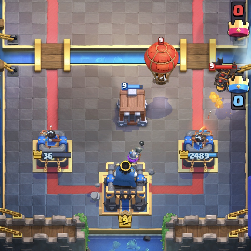 ですがラヴァハウンドとバルーンを組み合わせるために使うエリクサーは合計で12と非常に大きく、エリクサーを管理するのが非常に難しいので先ほど話した橋前攻めがかなり有効な手段です。