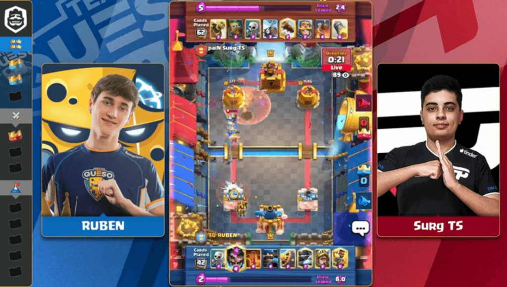 お互いにスケルトンラッシュデッキの採用だったのですが、Ruben選手は昔からある遅延型のスケルトンラッシュデッキ、Surg TS選手はアーチャー、バルキリー入りのスケルトンラッシュデッキでした。