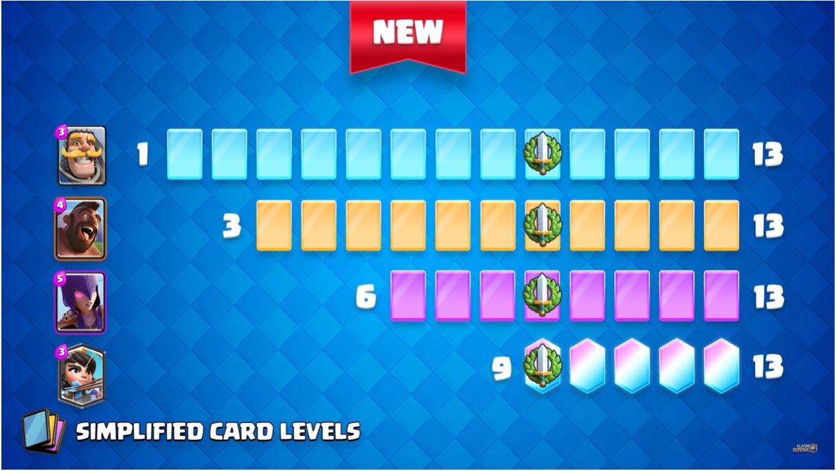 カードとタワーのレベルを上げて行くには、これらのものが必要です。
