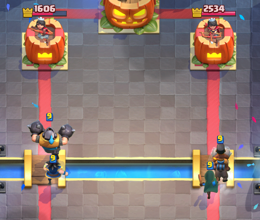 相手タワーのターゲットを体力の高いメガナイトの取らせることによってラムの攻撃をより通しやすく、止めにくい形を作ることが出来ます。