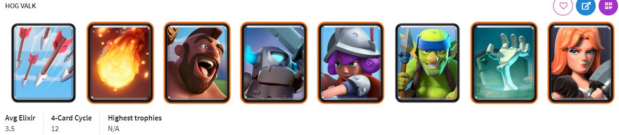 アリーナ2までにアンロックされるカードで作ることのできるオススメデッキその③は、ホグライダーデッキです。