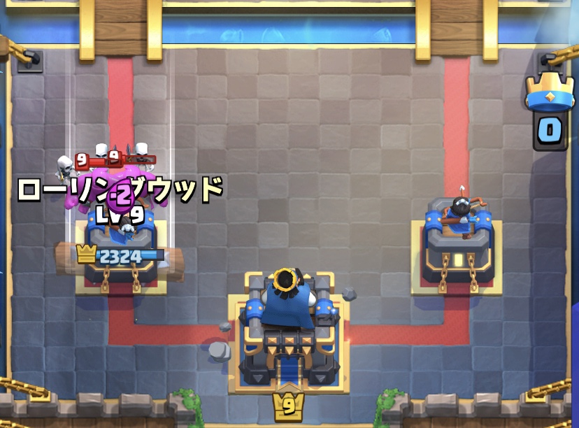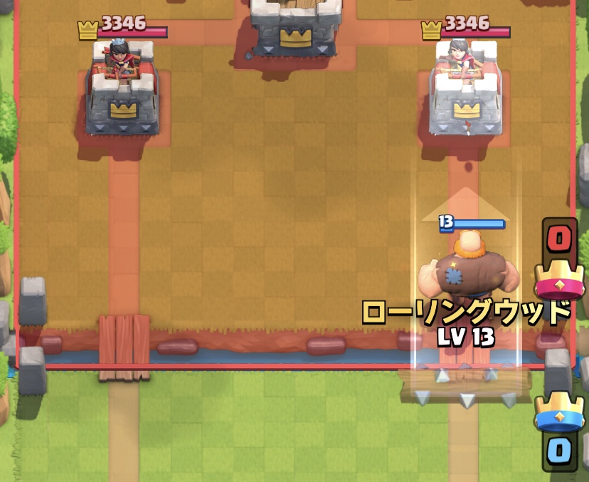 ローリングウッドは2コストの呪文の中で一番確定タワーダメージが高いですし、またタワーも巻き込めるチャンスがかなり多いです。