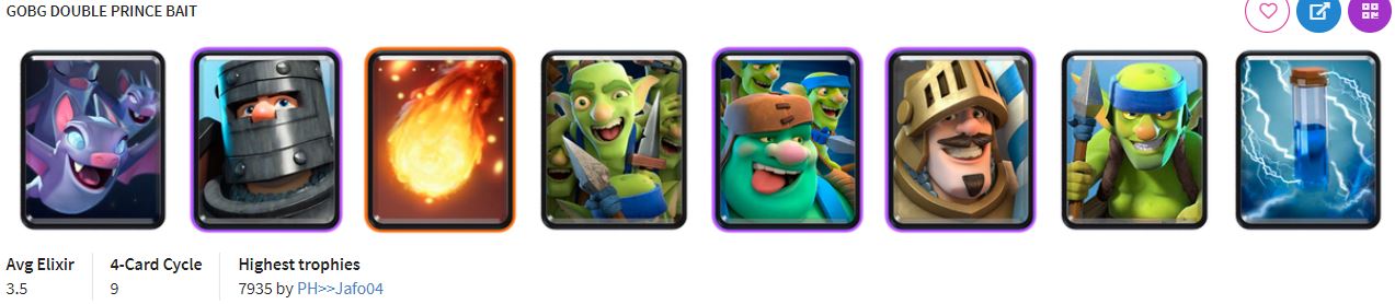 「プリンス」と「ダークプリンス」の”PP”に「ジャイアント」を組み合わせた”ジャイPP”が有名ですが、このデッキではジャイの代わりにゴブジャイを使う訳です。