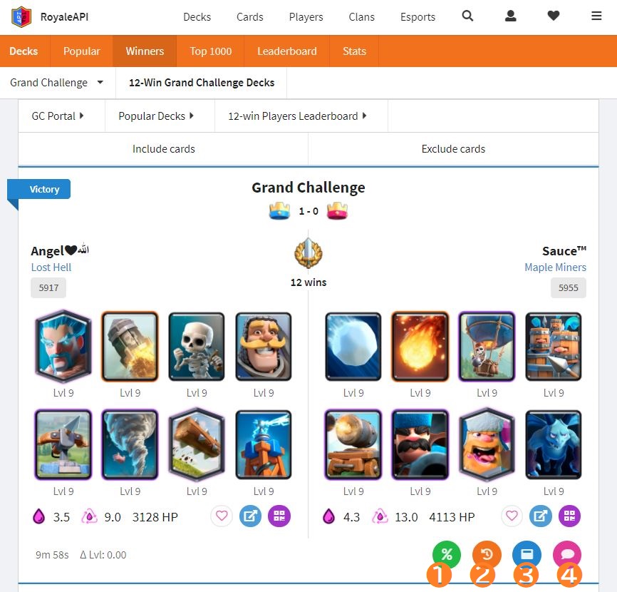 RoyaleAPI内の「Battles(バトル)」データには右下に4つのアイコンが並んでいます。