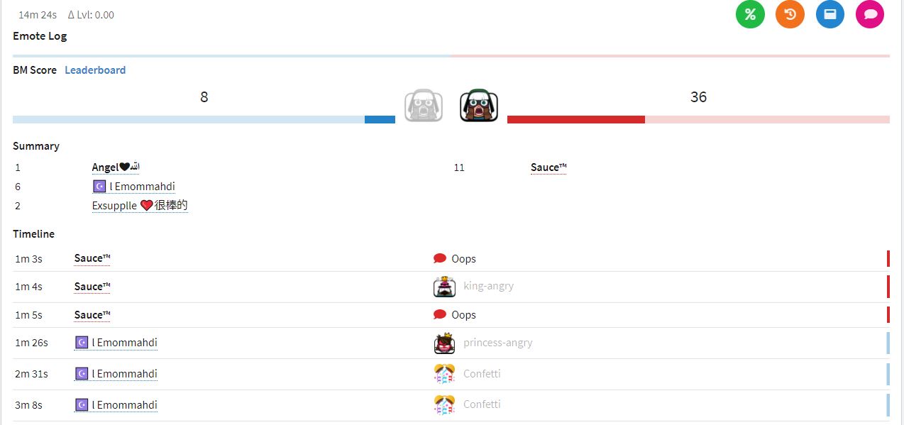 「さっきのバトルで応援してくれてたの誰だろう?」それを知ることができるのが「Emote log(スタンプ履歴)」です。