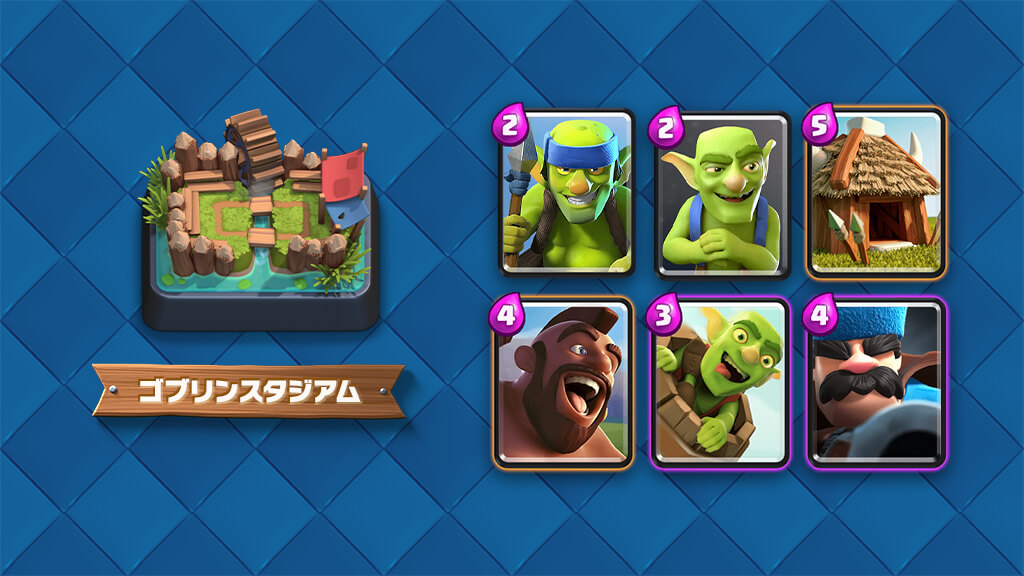「訓練場」とアリーナ1の「ゴブリンスタジアム」で開放(アンロック)されるカードは全部で18枚です。