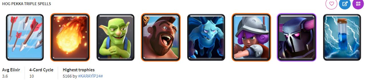 ペッカは攻城バーバリアンと組み合わせた「ペッカ攻城」がテンプレデッキとして人気ですが、必要なサブユニットが開放されていないこのアリーナ帯ではペッカホグの形をおすすめします。
