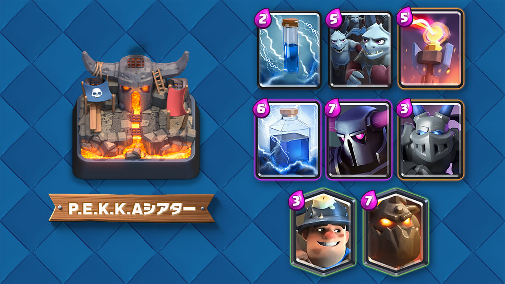 アリーナ4の「P.E.K.K.Aシアター」ではペッカ・ラヴァハウンドといったデッキの主軸となるカードをはじめ、ザップやディガーなど優秀な補助役のカードを含む8枚のカードが開放されます。