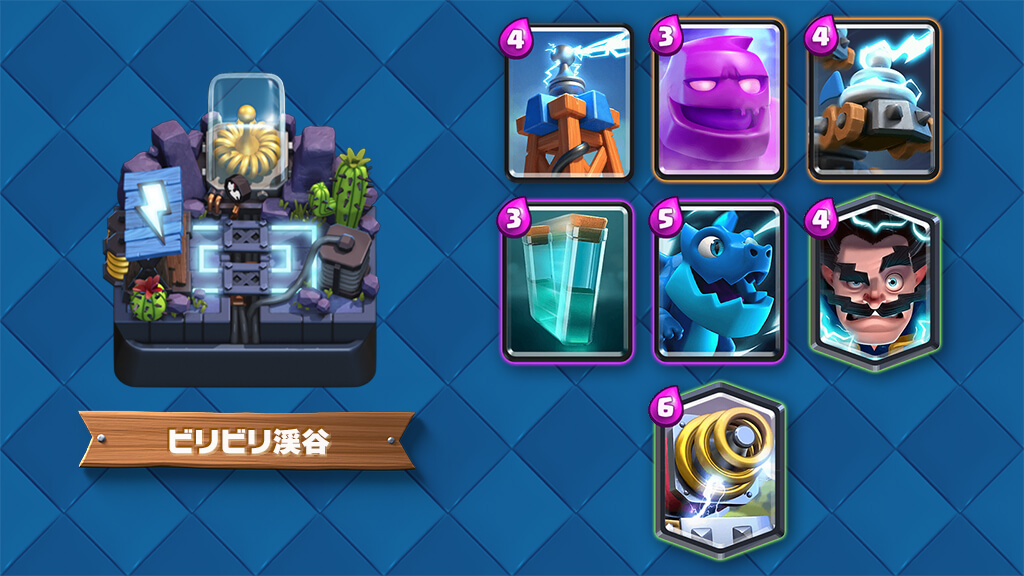 アリーナ11の「ビリビリ渓谷」では、エレクトロウィザードやザッピーといったスタン効果を持つカードを含む7枚が解放されます。