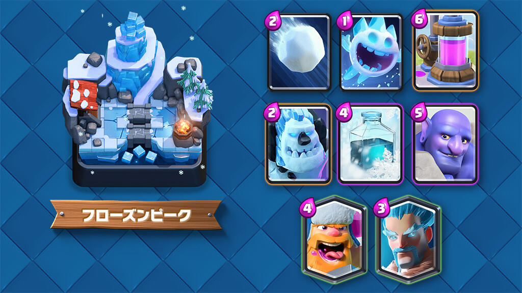 アリーナ10の「ホグマウンテン」では、エリートバーバリアンやエレクトロジャイアントといった強力なウェポンカードをはじめ、ヒールスピリットや漁師トリトンなどの汎用性の高いカードを含む10枚が解放されます。