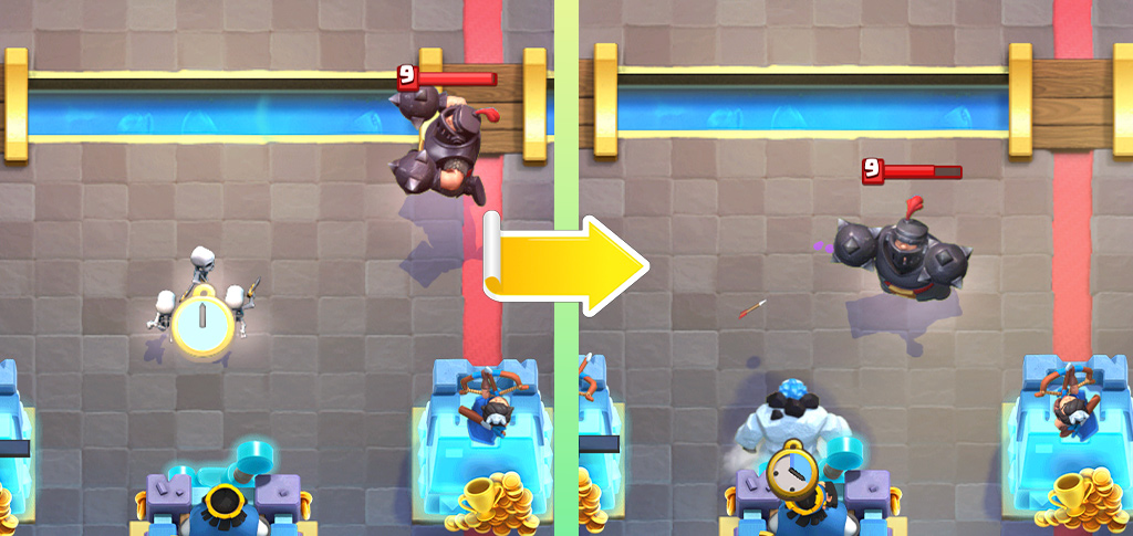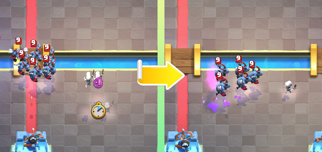 5コストを1コストでほとんど処理する事ができ、大きなエリクサーアドバンテージが得られるテクニックです。