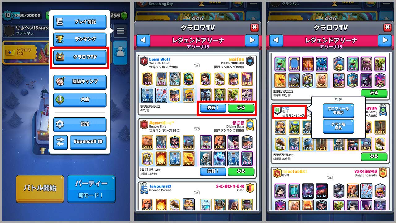 クラロワTVはそれらを簡単に把握することができる、アプリ内機能の一つ。