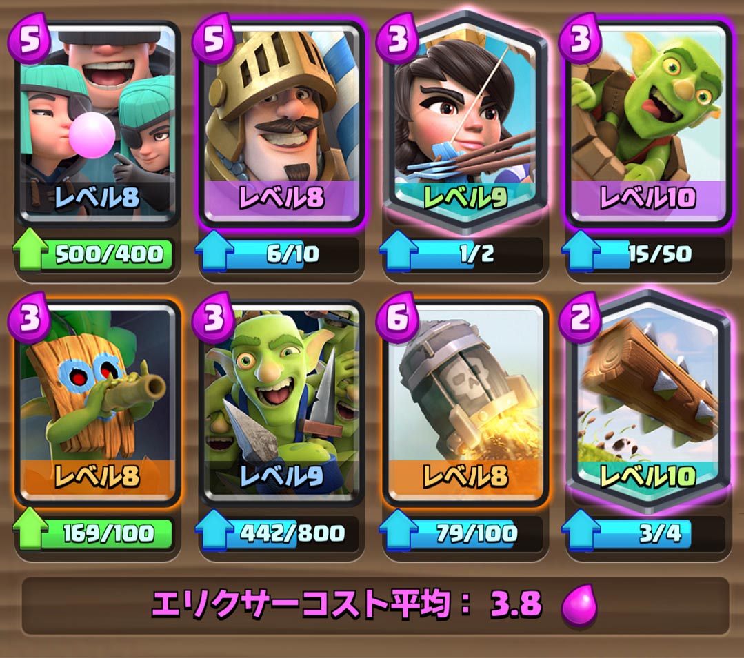 ダメージソースはゴブリンバレルのみならず、プリンスやアウトロー、またプリンセスや呪文での削りも有効であり、サブウェポンの豊富さが特徴です。