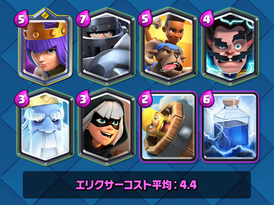 守りの堅いカードが多く入っているため、アチャクイやライトニングといった突破力のあるカードを持つ相手にも安定した防衛ができます。