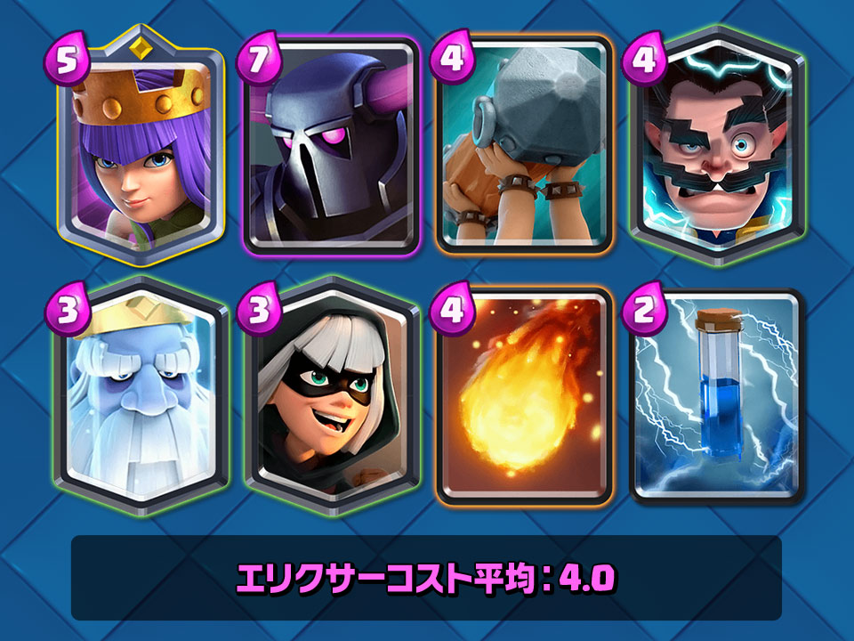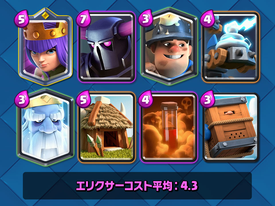 相手のライトニングに対してはゴブ小屋・ザッピー、大型ユニットに対してはペッカ、と使用率の高いカードに対するメタカードが多い点が魅力です。