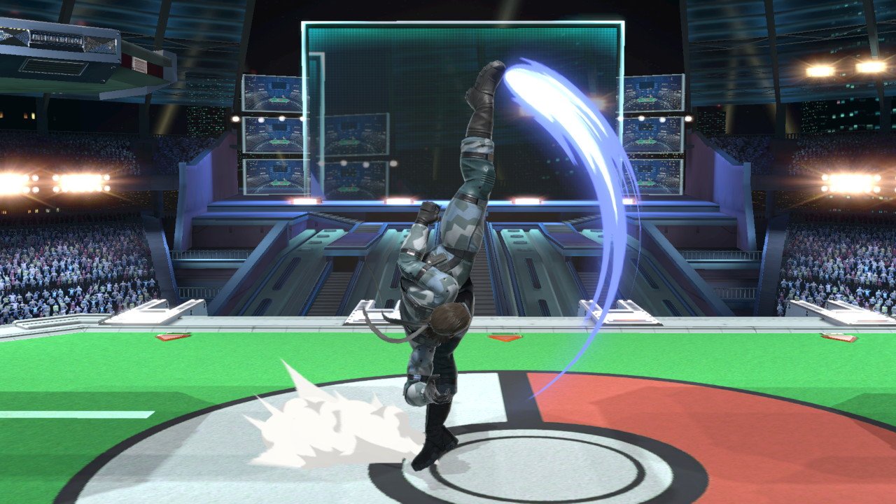 しかし、横方向のリーチは多くの人が思ってるよりも意外と短く、具体的に言えば少しでもスネークと逆側に慣性を入れつつ空中攻撃を振っていればジャスガされても上強で反撃は取れないくらいの長さです。