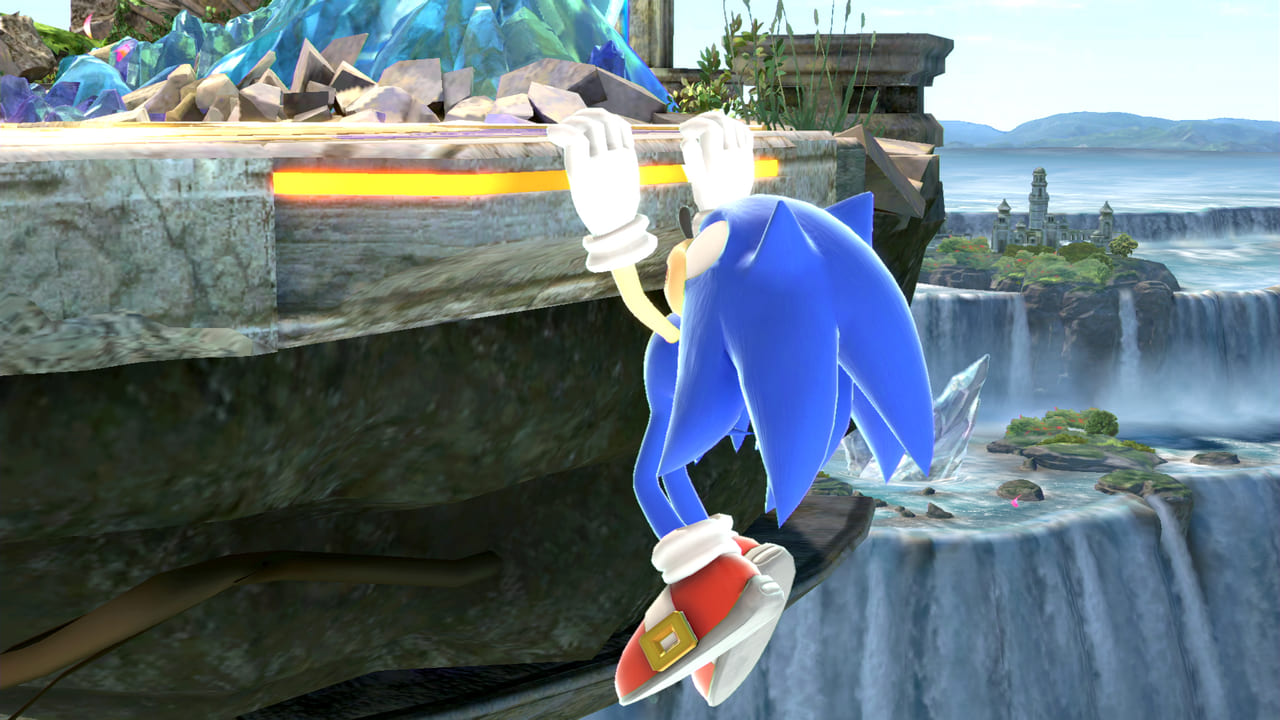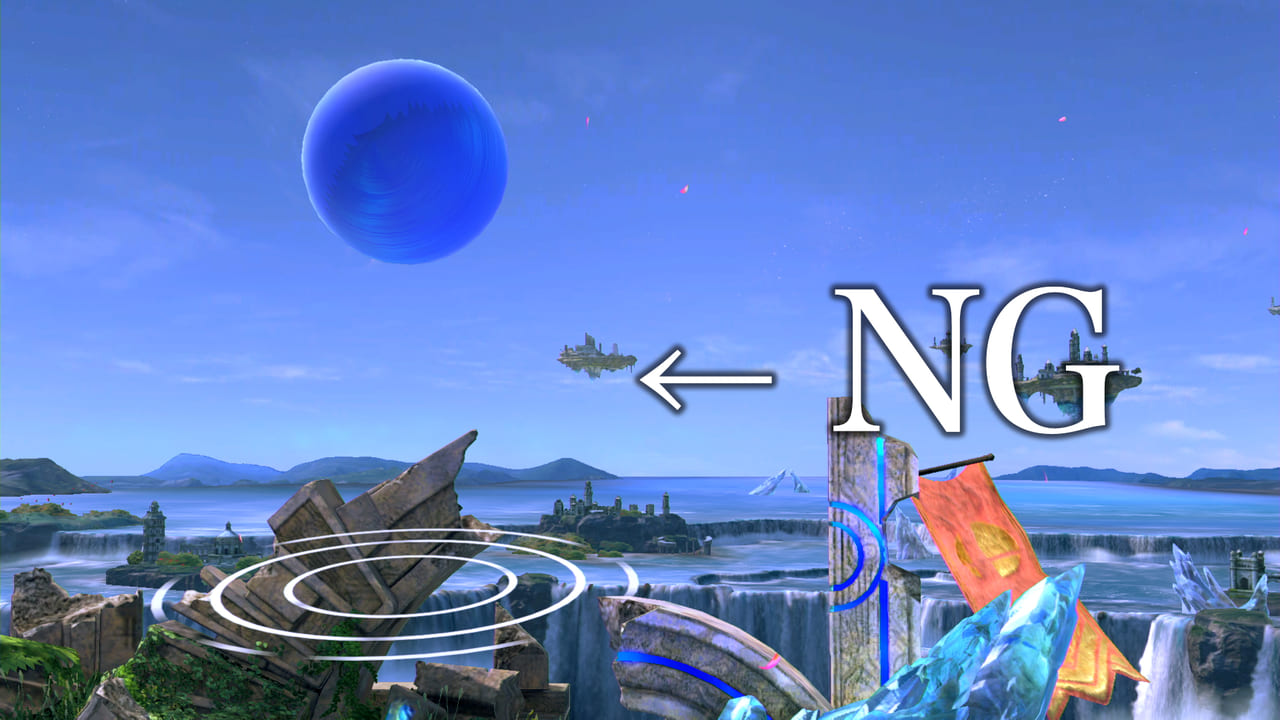 立ち直しの基本はまず崖に逃げること。特にジャンプを失った状態や落下が遅く地上に戻るのが難しいファイターの場合は崖に即逃げしないと最悪の状態になりかねません。
