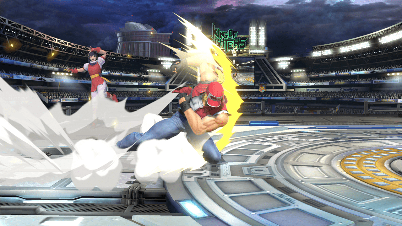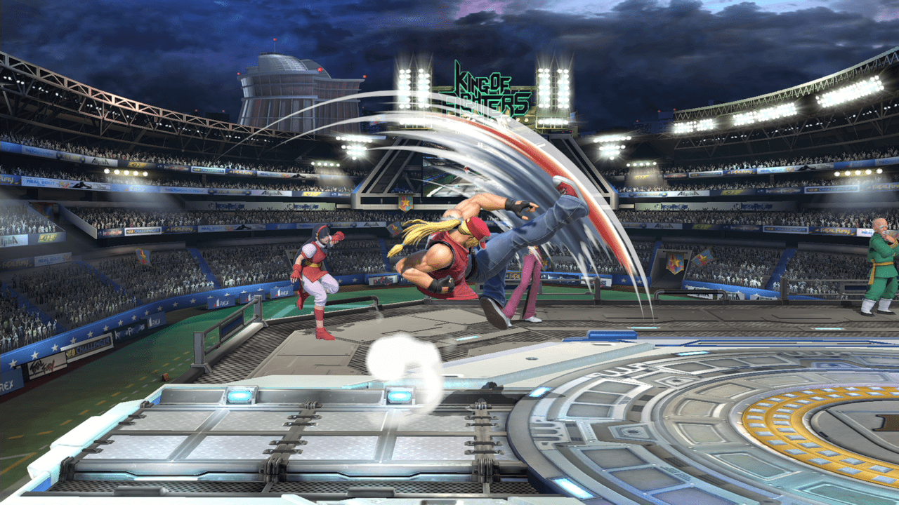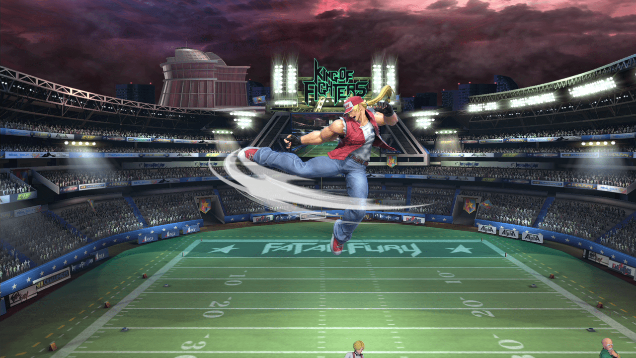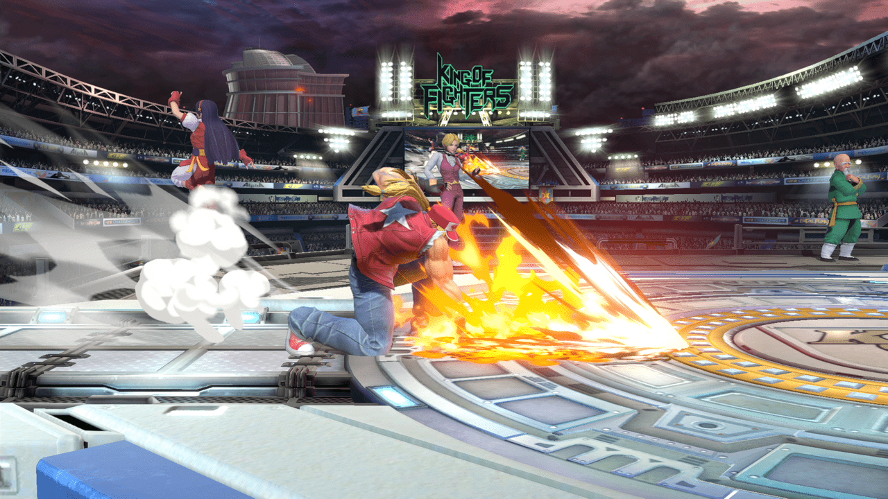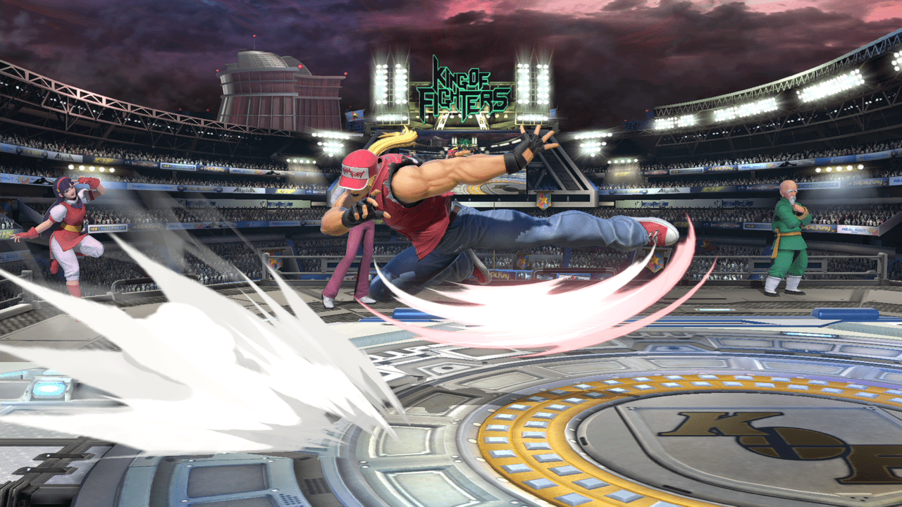 テリーの評価をあげてる技の1つ。前方に向かって大きく飛びながら蹴りかかるこのモーションはあまり過去のスマブラを見ても無かったと思います。