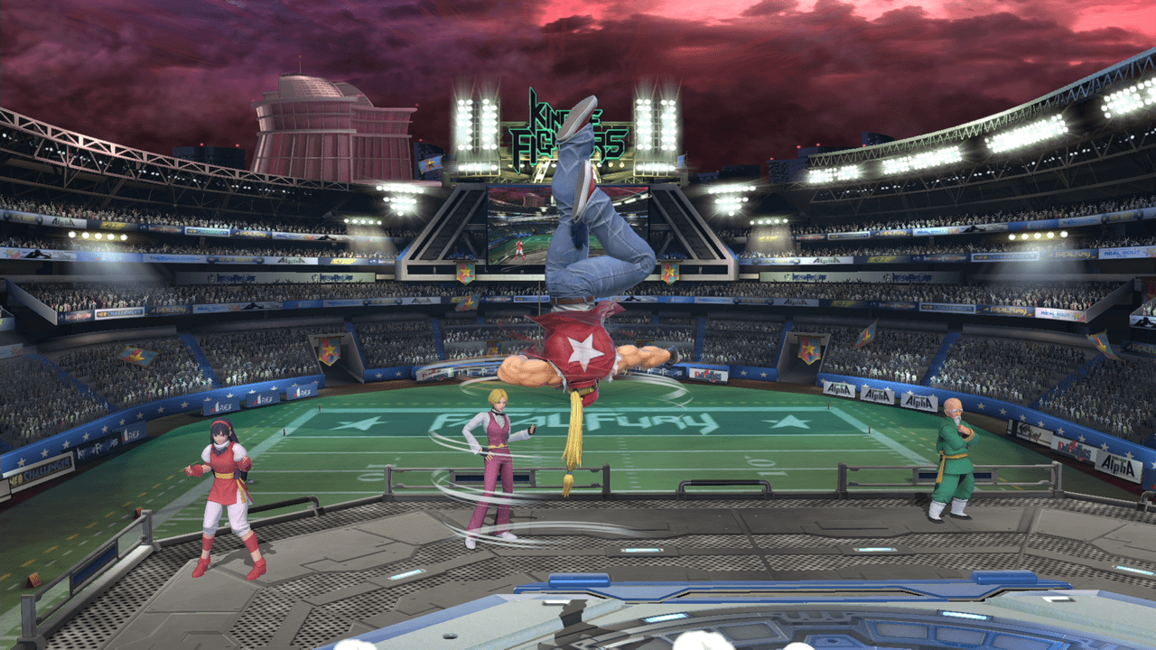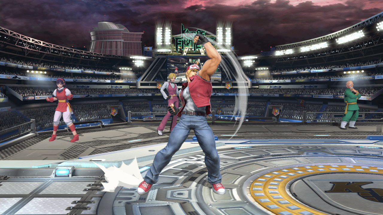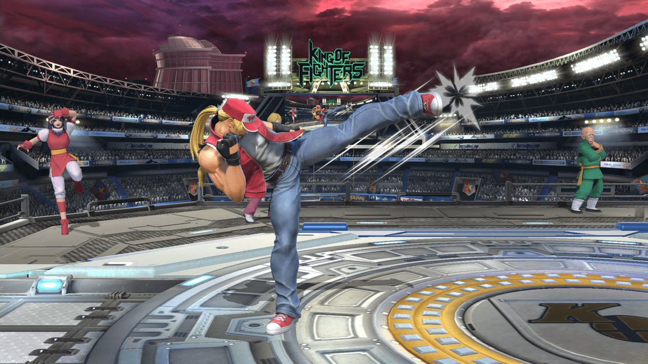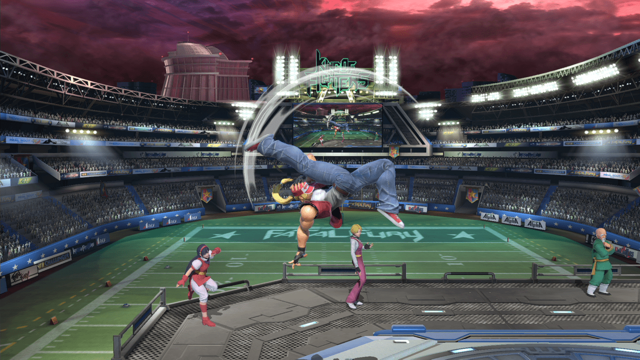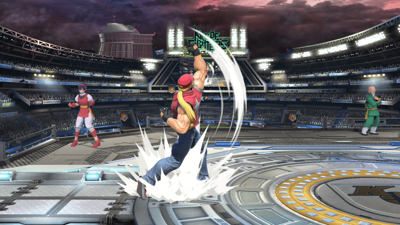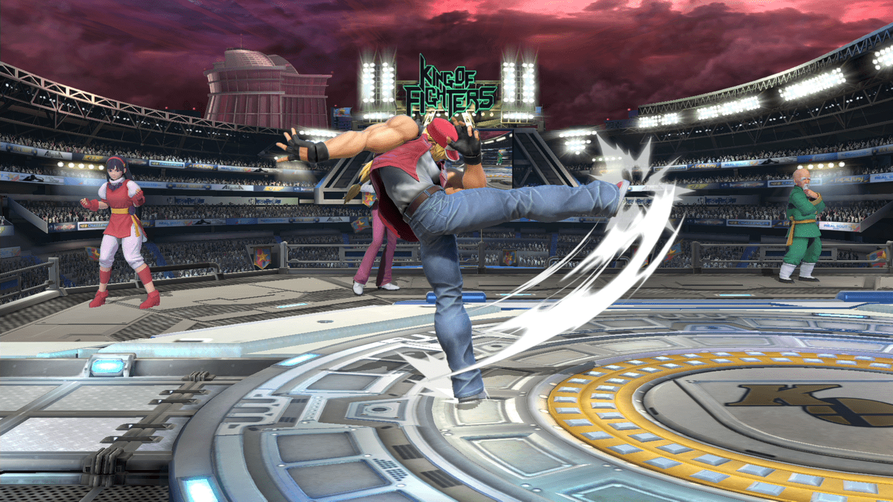 テリーの評価をあげてる技の1つ。前方に向かって大きく飛びながら蹴りかかるこのモーションはあまり過去のスマブラを見ても無かったと思います。