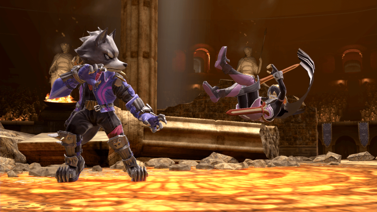 地上を飛び道具で制圧し、浮いたところを落とす飛び道具ファイターの基本的な行動でかなりルキナ側の動きを制限できるので、飛び道具で制圧するのもかなり効果的でしょう。