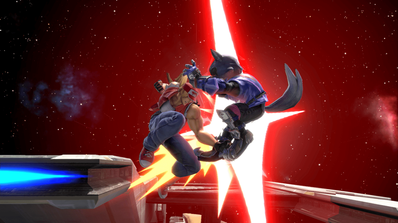 具体例をあげましょう。自分がウルフを使っている時に、横強攻撃を先端で押し付けます。
