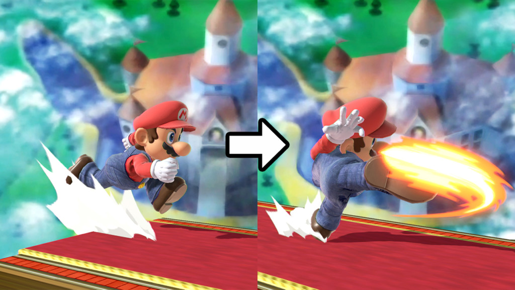 前作までは上スマッシュしか繋げられなかったダッシュモーションですが、今作ではダッシュから弱、強攻撃、下スマッシュ、横スマッシュとどの技でも出せるようになりました。
