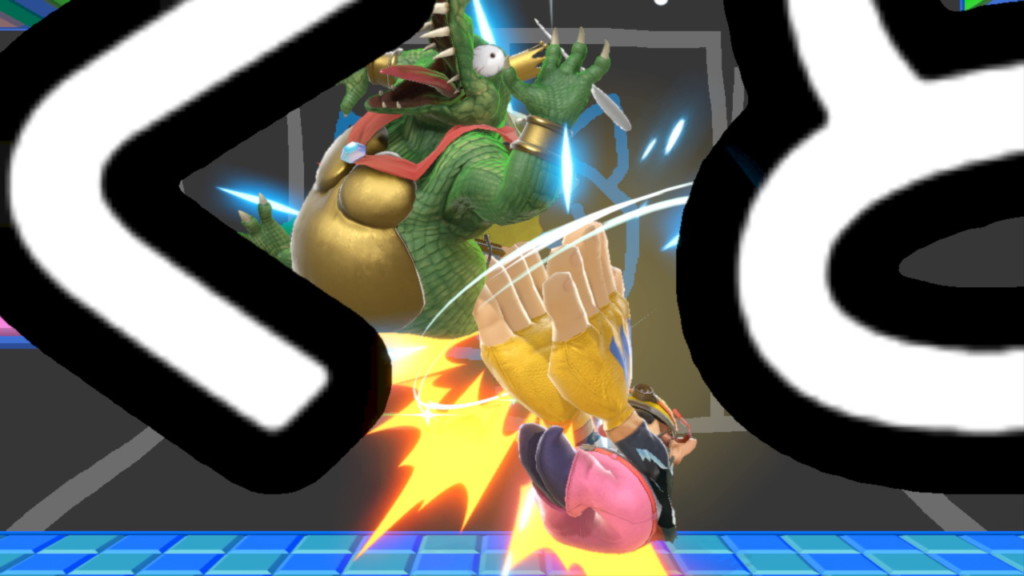 下スマは相手を低く吹っ飛ばし、前後に判定がある。しかし吹っ飛ばしの割に硬直が長く、持続もずっとあるわけではないのであまり使うポイントはありません。