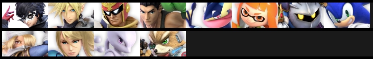 ジョーカー / クラウド / キャプテンファルコン / リトルマック / ゲッコウガ / インクリング / メタナイト / ソニック / シーク / ゼロスーツサムス / ミュウツー / フォックス