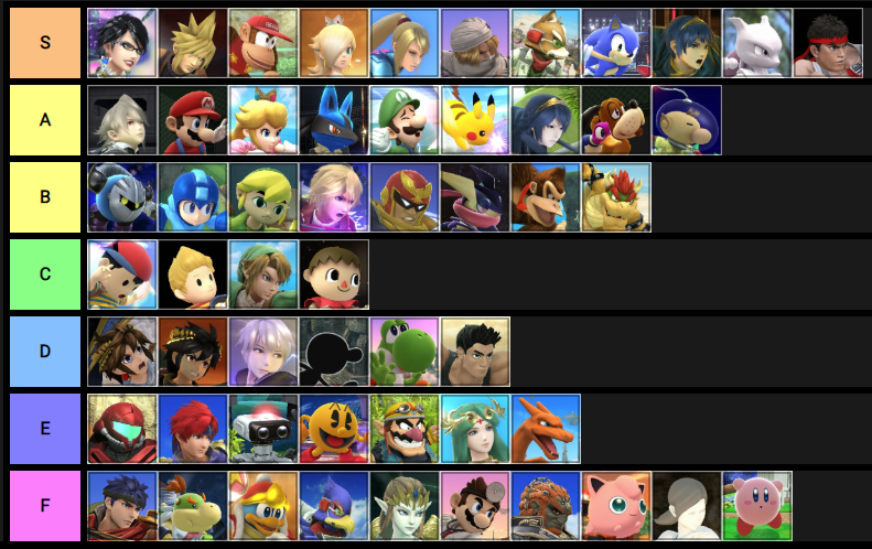 この結果を見るとスマブラにおいて最も重要なのは読み合いの選択肢を増やす機動力の高さであり、それが乏しいキャラは出来ることが少ないという点で総合評価も低くなってしまっているのでしょう。