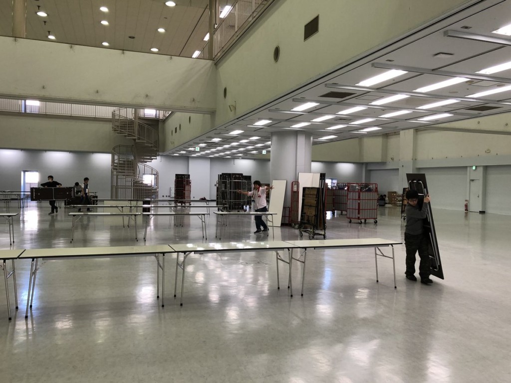 特に今回の大会で使用した机は想像以上に重く、危ない中で図面通りに設営を完成することが出来ました。