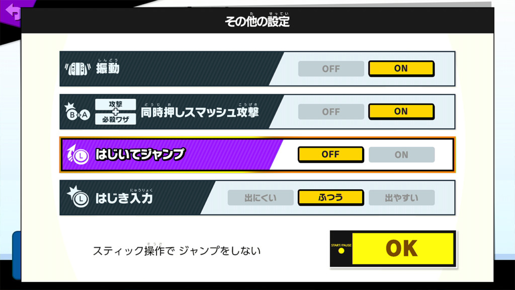 キーコンは「はじいてジャンプ」OFF!