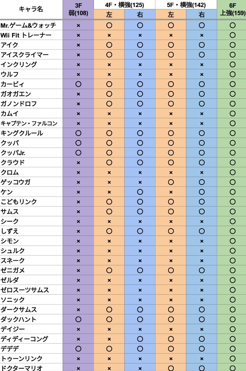 一方、横強は相手キャラによってダウンモーションにヒットしない場合があるのでそういう場合は×になっています。