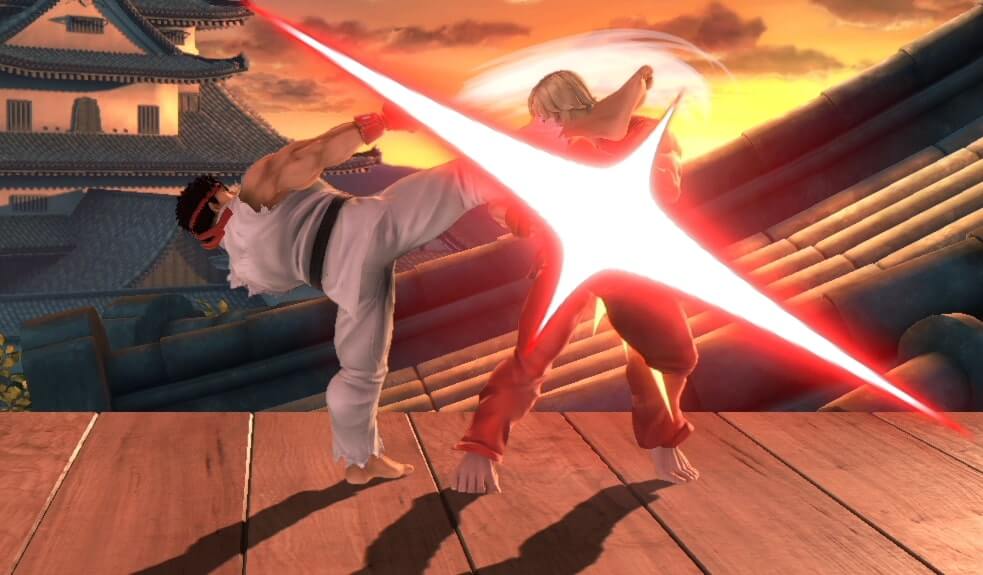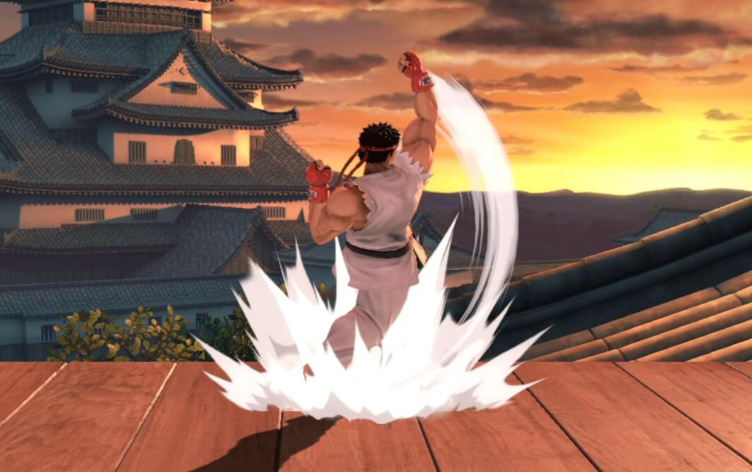 波動拳や小技でシールドを固めさせた相手に対してシールドブレイクを狙います。相手にとってガードをはらせることに意味を強く与えないと、発生が遅い関係上当てることは難しいです。