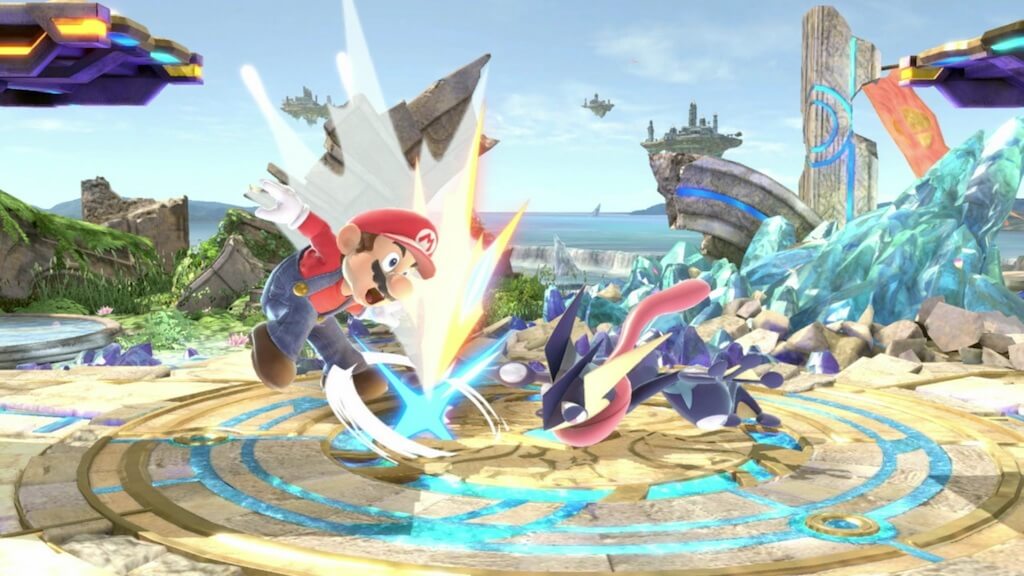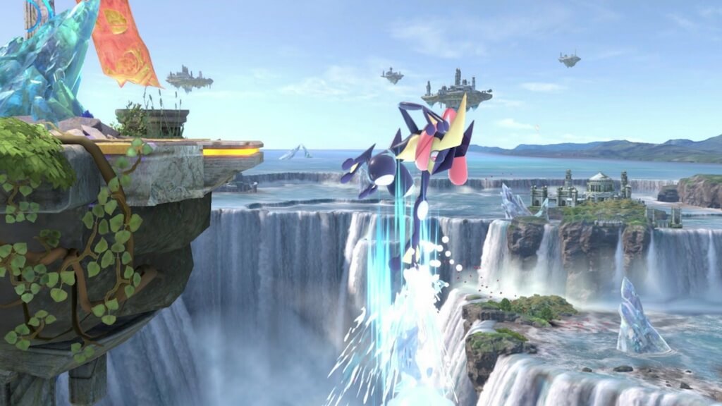相手の水手裏剣で動かされ、安易な差し込みをしてしまったところに空中前攻撃や対空(対空中)の上スマッシュを喰らってしまうのが対ゲッコウガの悪いパターンであり、ゲッコウガの強みでしょう。