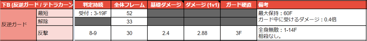 シンプルに表現するなら、下Bを押してる間はずっとカウンター効果が持続するが、後隙が非常に大きい技といった感じです。